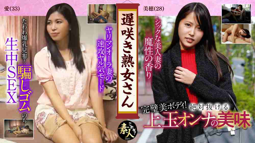 【1人目奧さん】シックな雰囲気の美人妻です。しっとりとした落ち着きがありながらも、あどけなく可愛らしいルックス、大人しそうなキャラ、引き締まったカラダに程良い大きさの美乳、甘く切なげな喘ぎ声と快感に酔いしれる表情が素敵過ぎます。手マンで泣きそうな声を漏らし、フェラの時の上目遣いの表情なんか、それだけでオカズになるレベルです。騎乗位での拙い腰使いも初々しくて素敵、下から突かれてたまらず快感に包まれていき、バックで突かれて快感に酔いしれ、正常位で男の身体にしがみつき、中出しと同時にリアルに絶頂を迎えます。上玉です。SEXしたら絶対ハマる、地味系魔性女です。【2人目奧さん】真面目そうなキャラを演じつつも、滲み出るヤリマンオーラが素敵です。男に迫られると、一応は困惑したフリはしますが、速攻でやる気モードへスイッチです。たわわな爆乳を揉みしだかれ、男の股間に手を延ばすあたり、やっぱりな、という感じです。クンニで切なげな喘ぎ声をあげて快感に酔いしれ、ローターでビクビクと身体を震わせ、腰をひくつかせる姿がエロ過ぎます。さすがに生挿入はNG、ゴム付けての挿入です。ガン突きされて、思う存分に快感に浸り、バックになった際に隙を見てゴムを外し生挿入、生チンの破壊力で、さっきよりもテンション上がってます。騎乗位で何ともリアルに絶頂を迎えるのも、やっぱり生だから?生チン&ローターで、えげつなく快感に酔いしれる姿がヤバすぎます。ビッチ確定です。最後は中出しと同時にリアルに絶頂、何が起こったか判らない姿に溜飲が下がる気がするのは私だけでは無いはずです。